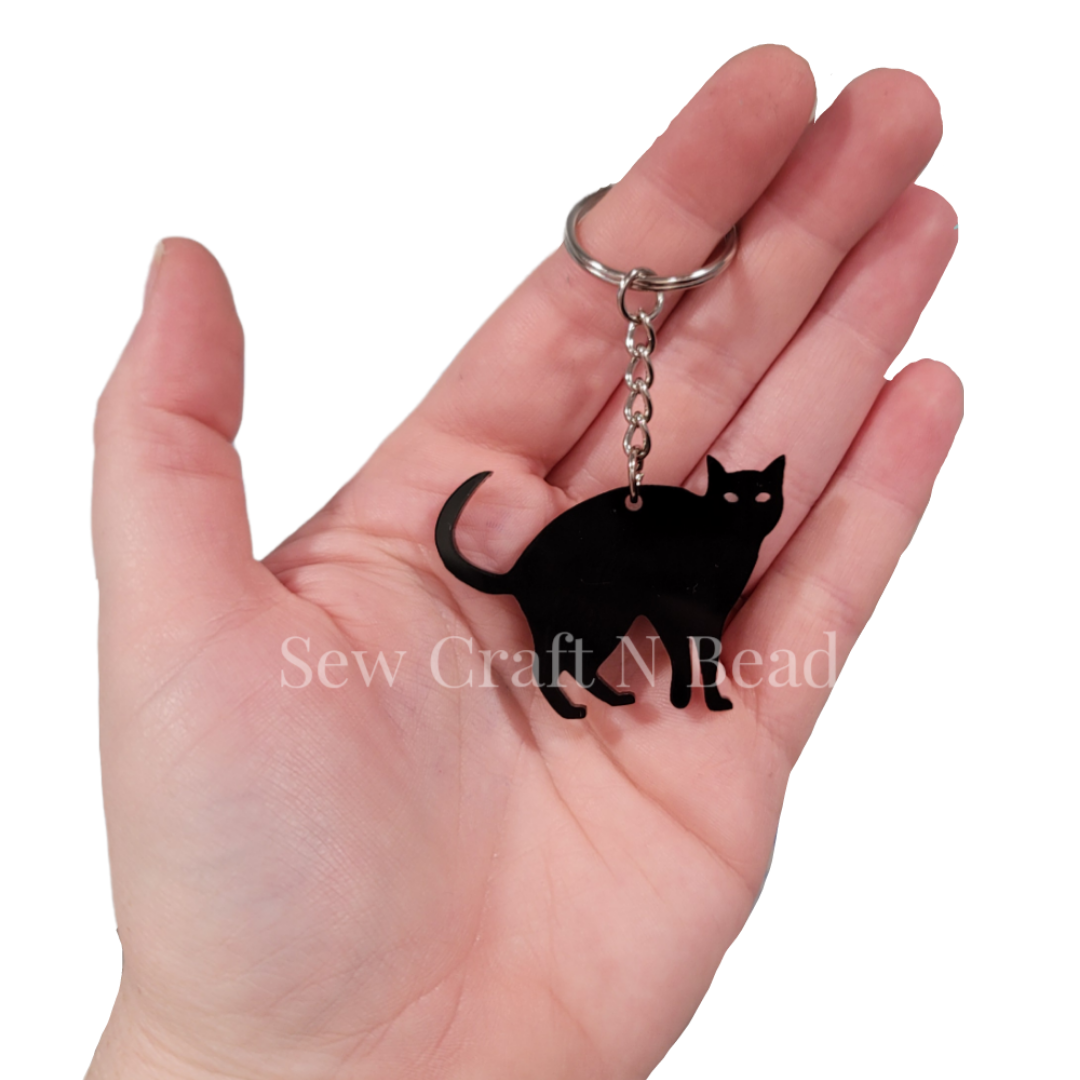 Then this laser-cut acrylic black cat keychain charm is the perfect selection for any Cat lover collection! This handmade black kitten tag is the perfect gift for family, friends, or for yourself to hook on your purse, lunch bag, or backpack. This cute spooky cat keyring is made with durable opaque black acrylic and is perfect to carry around with you, especially for the fall season.