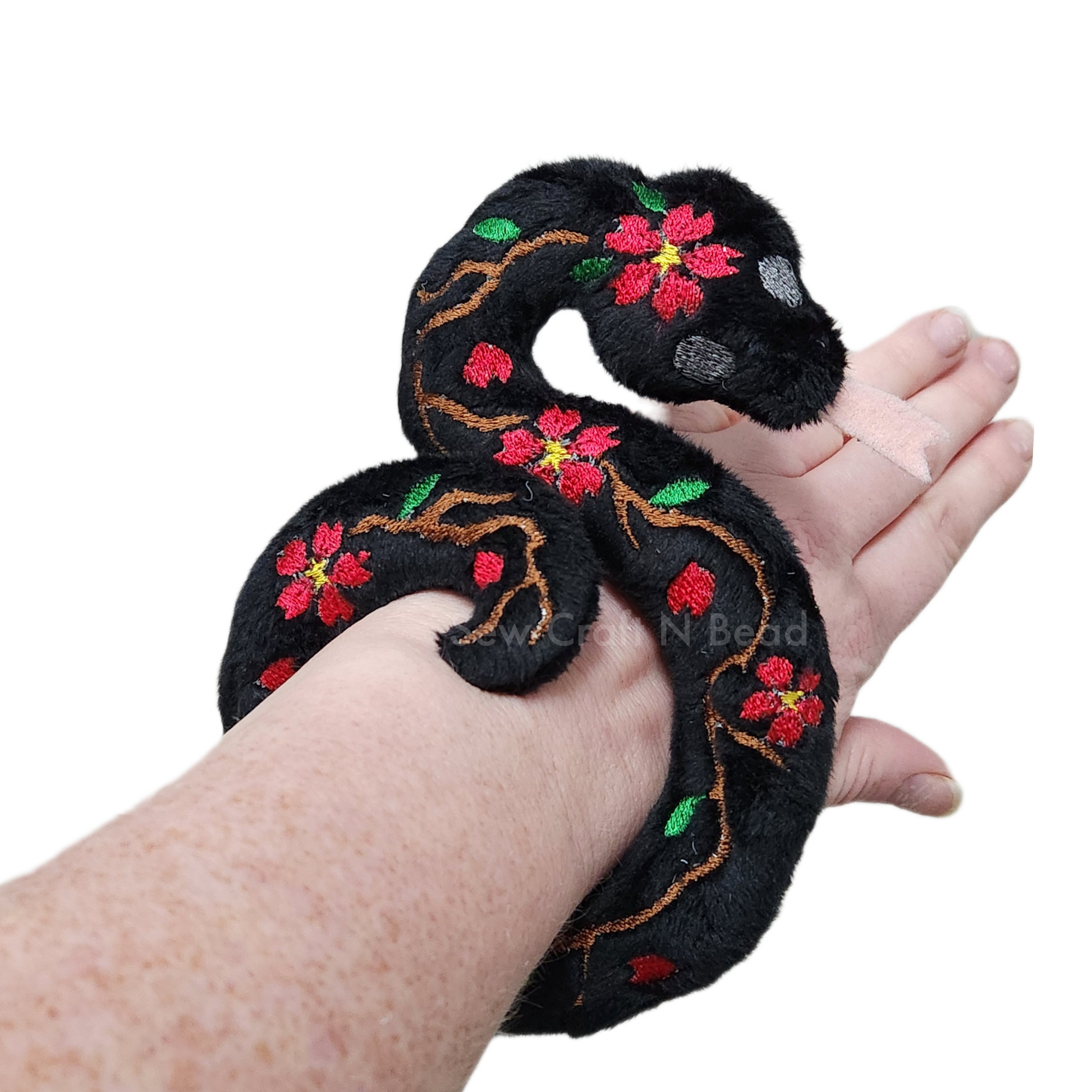 Black Snake Plush with Red Sakura Details (READY TO SHIP)