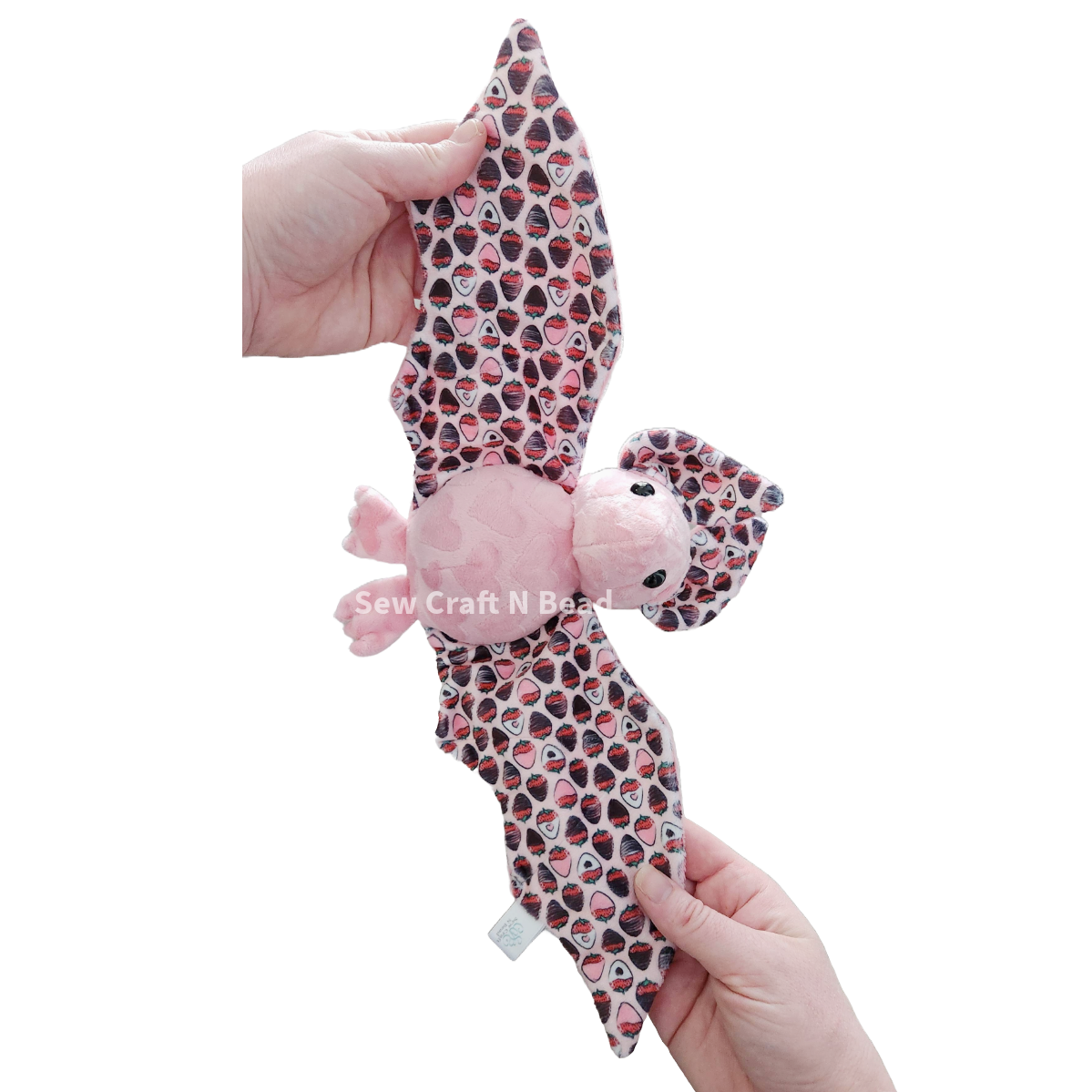 Introducing the Chocolate-Covered Strawberry Bat Plush, a deliciously adorable creation made with custom chocolate-covered strawberry minky fabric! Combining the irresistible charm of chocolate-dipped strawberries with the whimsical design of a bat, this plush is the perfect treat for plush collectors and strawberry lovers alike.