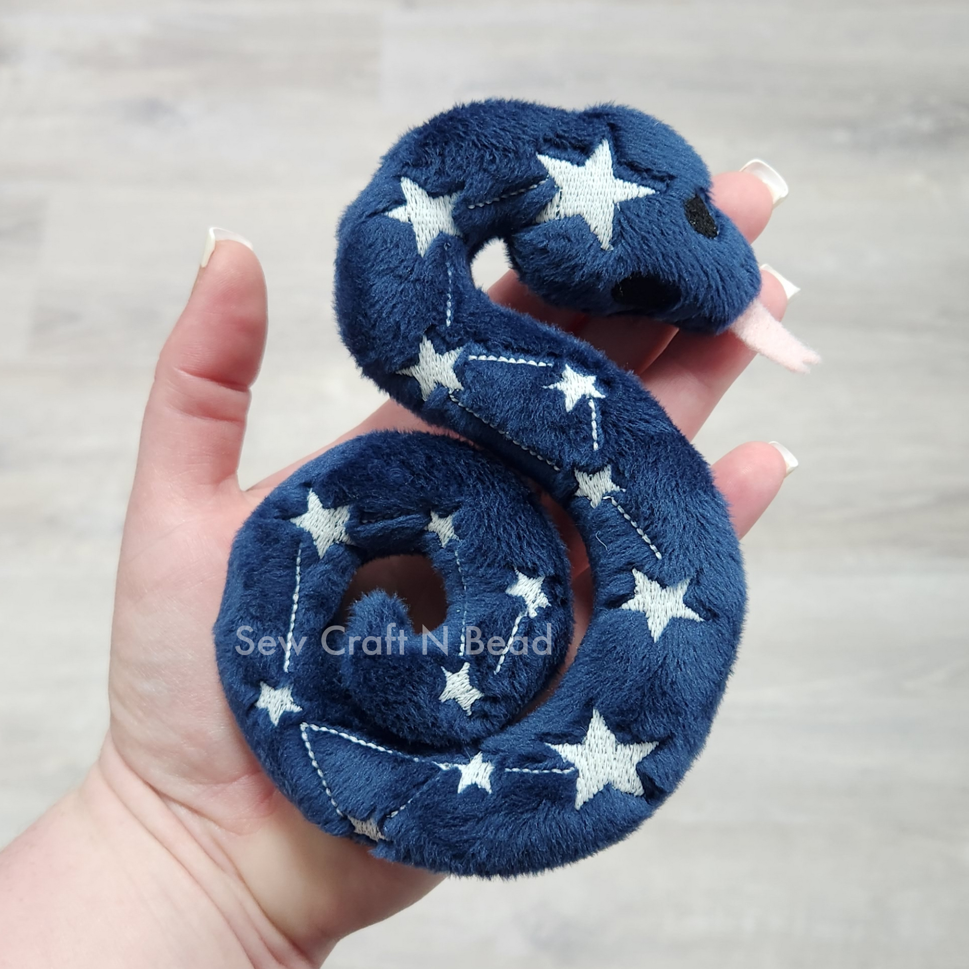 The snake plush measures approximately 7 inches when curled. Perfect size to carry around on your arm!