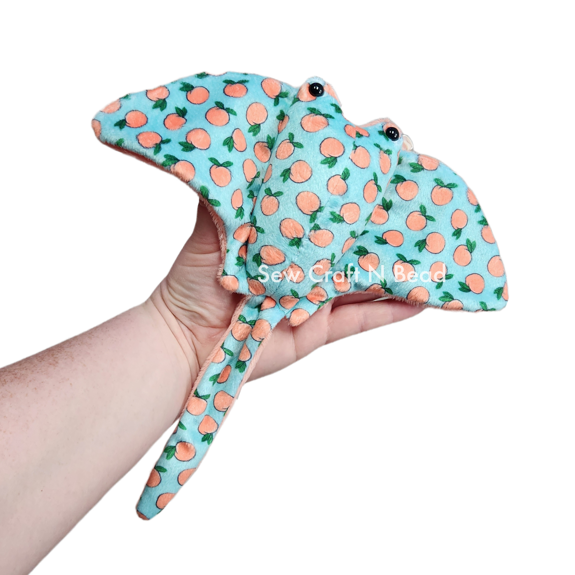 Introducing the Peach Stingray Plush—a delightfully soft, slightly sassy, and 100% sting-free cuddle buddy! Made with custom peach-patterned minky fabric, this plush is the perfect mix of ocean elegance and fruity fun. Whether you’re a stingray superfan, a peach enthusiast, or just want a plush that radiates summer sweetness, this juicy little sea pancake is ready to glide into your heart (and possibly your fruit bowl).